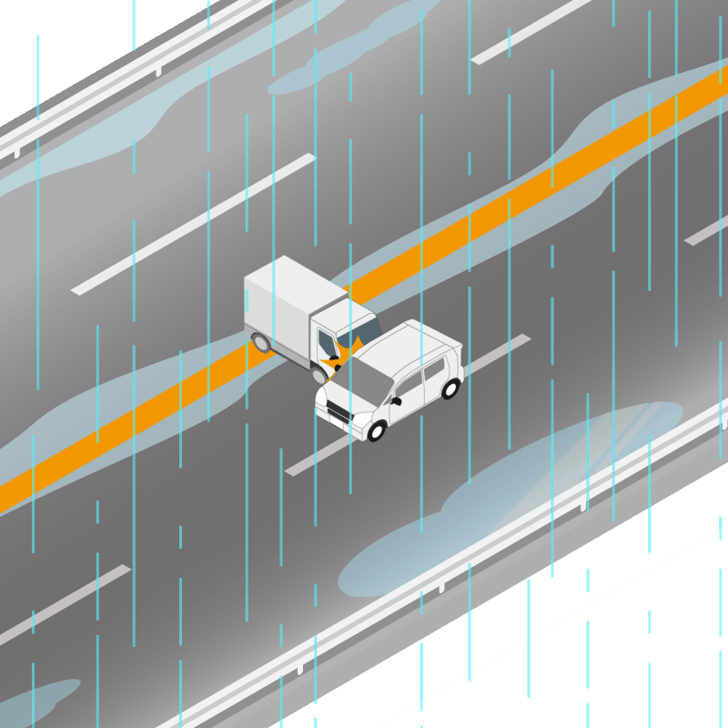 ・イラストに使用している各要素(車、背景、車、天候、信号、衝突地点など)は、代表的なイメージをイラスト化しており、色や形状等含め現実の事故の状況とは異なります。あくまで、事故のイメージとして参考までにご活用ください。