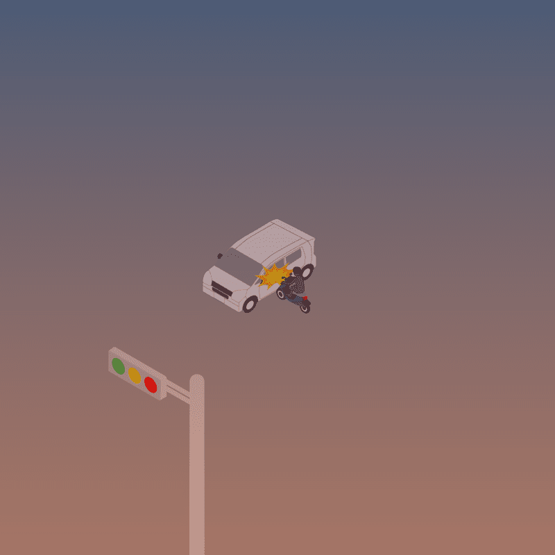・イラストに使用している各要素(車、背景、車、天候、信号、衝突地点など)は、代表的なイメージをイラスト化しており、色や形状等含め現実の事故の状況とは異なります。あくまで、事故のイメージとして参考までにご活用ください。