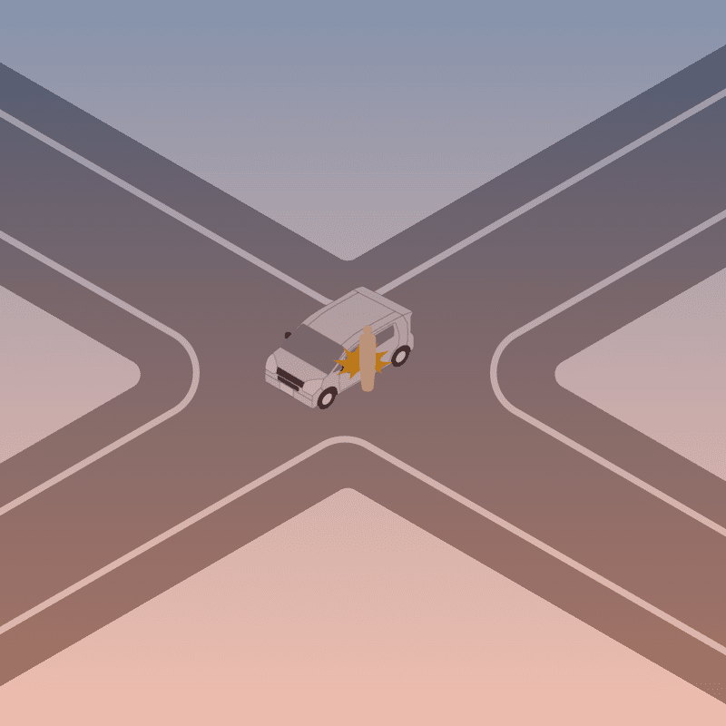 ・イラストに使用している各要素(車、背景、車、天候、信号、衝突地点など)は、代表的なイメージをイラスト化しており、色や形状等含め現実の事故の状況とは異なります。あくまで、事故のイメージとして参考までにご活用ください。