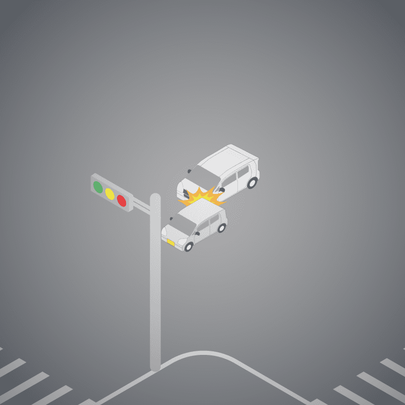 ・イラストに使用している各要素(車、背景、車、天候、信号、衝突地点など)は、代表的なイメージをイラスト化しており、色や形状等含め現実の事故の状況とは異なります。あくまで、事故のイメージとして参考までにご活用ください。