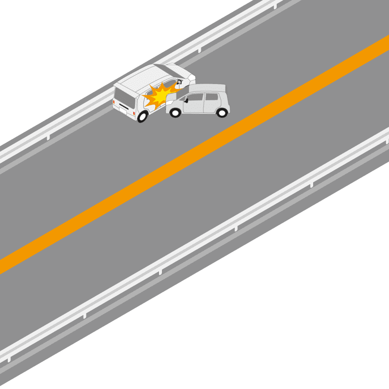 ・イラストに使用している各要素(車、背景、車、天候、信号、衝突地点など)は、代表的なイメージをイラスト化しており、色や形状等含め現実の事故の状況とは異なります。あくまで、事故のイメージとして参考までにご活用ください。