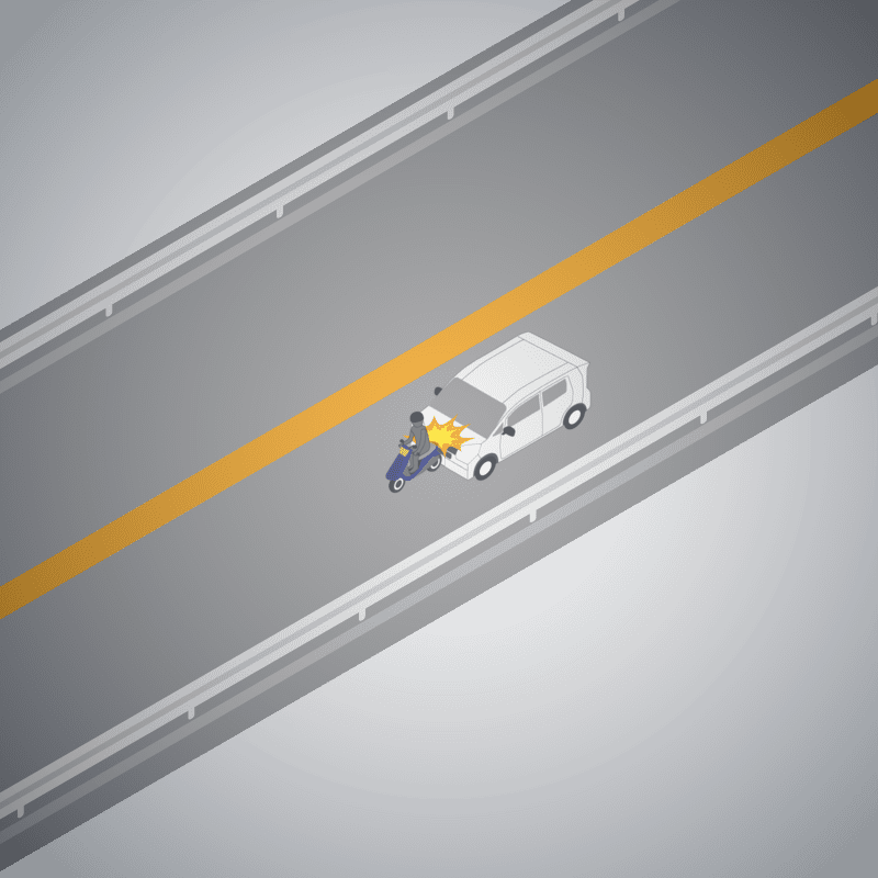 ・イラストに使用している各要素(車、背景、車、天候、信号、衝突地点など)は、代表的なイメージをイラスト化しており、色や形状等含め現実の事故の状況とは異なります。あくまで、事故のイメージとして参考までにご活用ください。