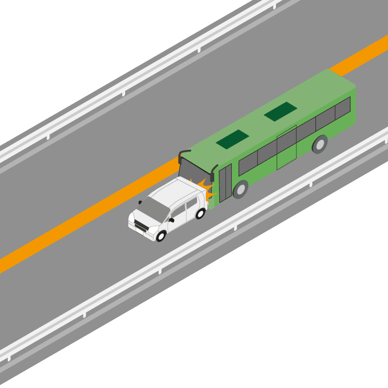 ・イラストに使用している各要素(車、背景、車、天候、信号、衝突地点など)は、代表的なイメージをイラスト化しており、色や形状等含め現実の事故の状況とは異なります。あくまで、事故のイメージとして参考までにご活用ください。