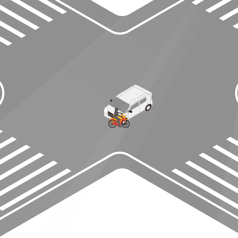 ・イラストに使用している各要素(車、背景、車、天候、信号、衝突地点など)は、代表的なイメージをイラスト化しており、色や形状等含め現実の事故の状況とは異なります。あくまで、事故のイメージとして参考までにご活用ください。