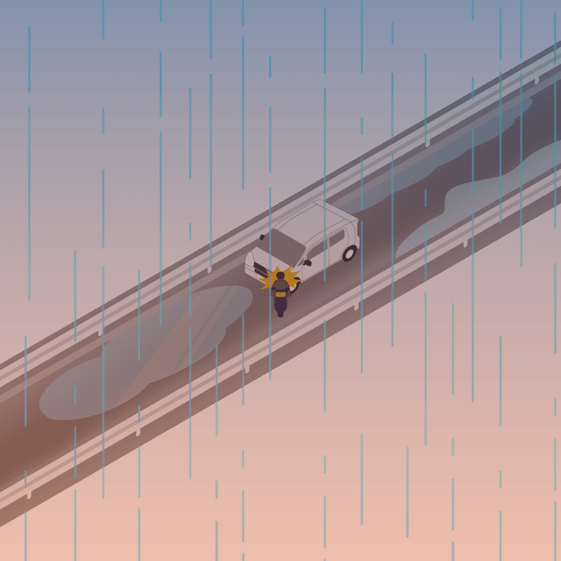 ・イラストに使用している各要素(車、背景、車、天候、信号、衝突地点など)は、代表的なイメージをイラスト化しており、色や形状等含め現実の事故の状況とは異なります。あくまで、事故のイメージとして参考までにご活用ください。