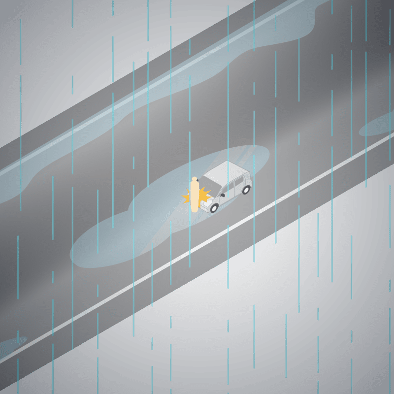 ・イラストに使用している各要素(車、背景、車、天候、信号、衝突地点など)は、代表的なイメージをイラスト化しており、色や形状等含め現実の事故の状況とは異なります。あくまで、事故のイメージとして参考までにご活用ください。