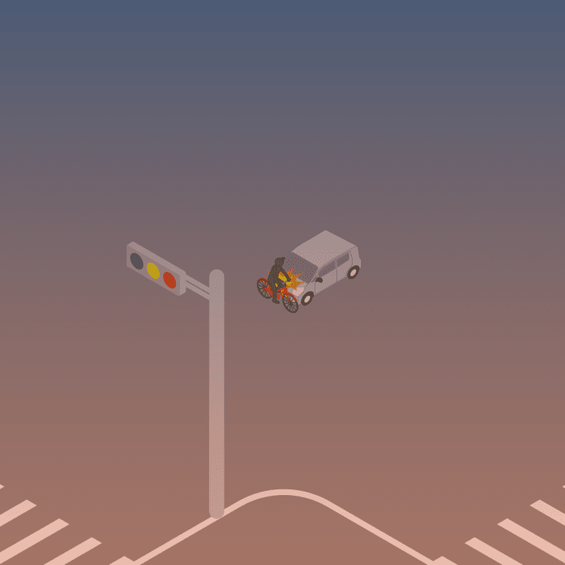 ・イラストに使用している各要素(車、背景、車、天候、信号、衝突地点など)は、代表的なイメージをイラスト化しており、色や形状等含め現実の事故の状況とは異なります。あくまで、事故のイメージとして参考までにご活用ください。