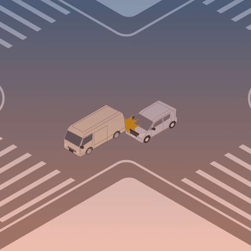 ・イラストに使用している各要素(車、背景、車、天候、信号、衝突地点など)は、代表的なイメージをイラスト化しており、色や形状等含め現実の事故の状況とは異なります。あくまで、事故のイメージとして参考までにご活用ください。