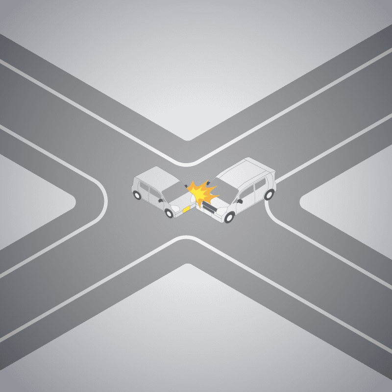 ・イラストに使用している各要素(車、背景、車、天候、信号、衝突地点など)は、代表的なイメージをイラスト化しており、色や形状等含め現実の事故の状況とは異なります。あくまで、事故のイメージとして参考までにご活用ください。
