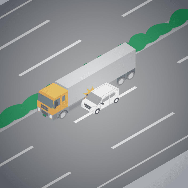 ・イラストに使用している各要素(車、背景、車、天候、信号、衝突地点など)は、代表的なイメージをイラスト化しており、色や形状等含め現実の事故の状況とは異なります。あくまで、事故のイメージとして参考までにご活用ください。