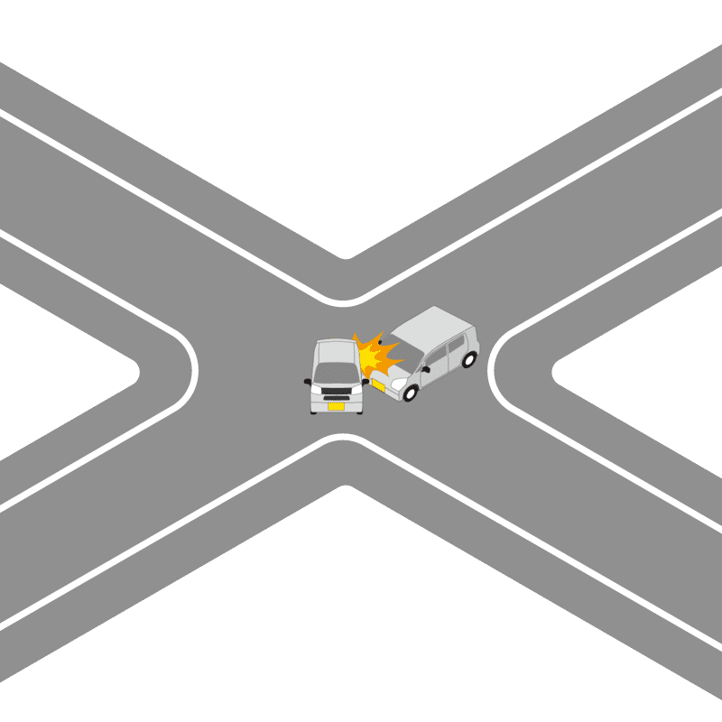 ・イラストに使用している各要素(車、背景、車、天候、信号、衝突地点など)は、代表的なイメージをイラスト化しており、色や形状等含め現実の事故の状況とは異なります。あくまで、事故のイメージとして参考までにご活用ください。