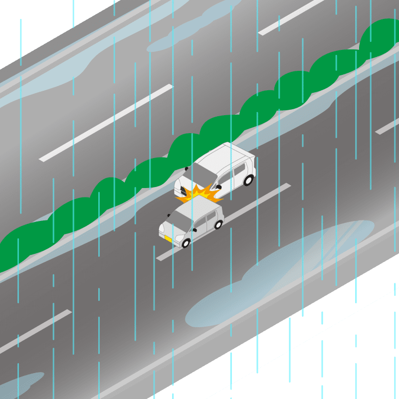 ・イラストに使用している各要素(車、背景、車、天候、信号、衝突地点など)は、代表的なイメージをイラスト化しており、色や形状等含め現実の事故の状況とは異なります。あくまで、事故のイメージとして参考までにご活用ください。