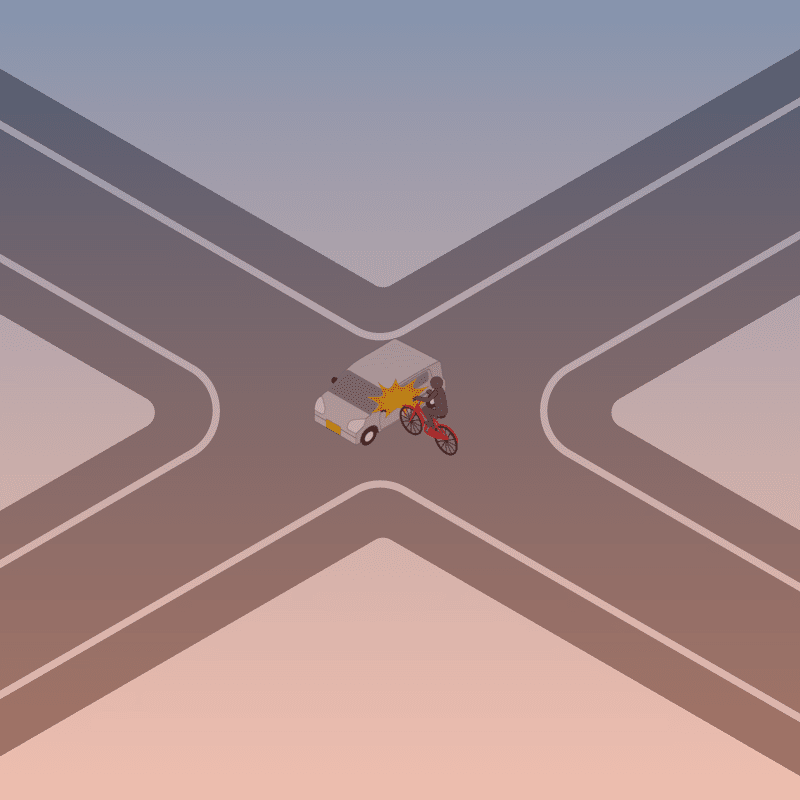 ・イラストに使用している各要素(車、背景、車、天候、信号、衝突地点など)は、代表的なイメージをイラスト化しており、色や形状等含め現実の事故の状況とは異なります。あくまで、事故のイメージとして参考までにご活用ください。
