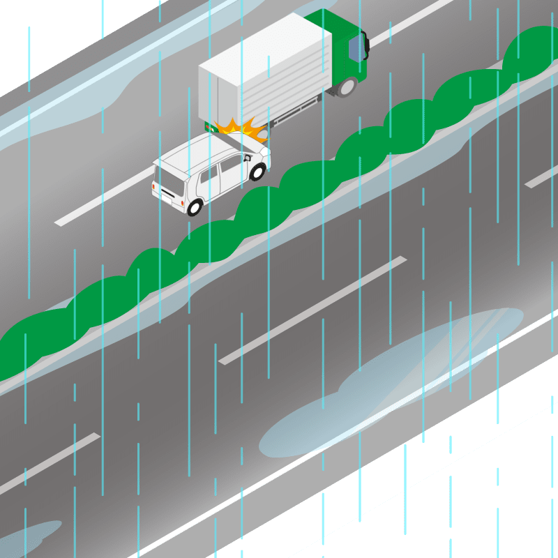 ・イラストに使用している各要素(車、背景、車、天候、信号、衝突地点など)は、代表的なイメージをイラスト化しており、色や形状等含め現実の事故の状況とは異なります。あくまで、事故のイメージとして参考までにご活用ください。