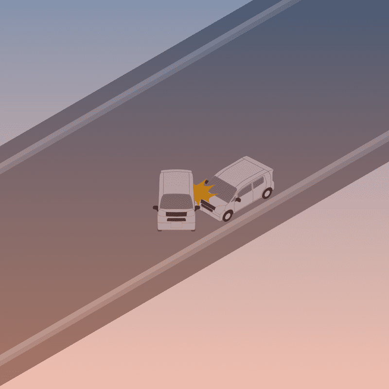 ・イラストに使用している各要素(車、背景、車、天候、信号、衝突地点など)は、代表的なイメージをイラスト化しており、色や形状等含め現実の事故の状況とは異なります。あくまで、事故のイメージとして参考までにご活用ください。