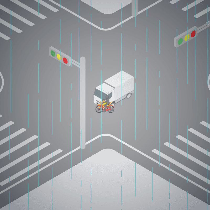 ・イラストに使用している各要素(車、背景、車、天候、信号、衝突地点など)は、代表的なイメージをイラスト化しており、色や形状等含め現実の事故の状況とは異なります。あくまで、事故のイメージとして参考までにご活用ください。