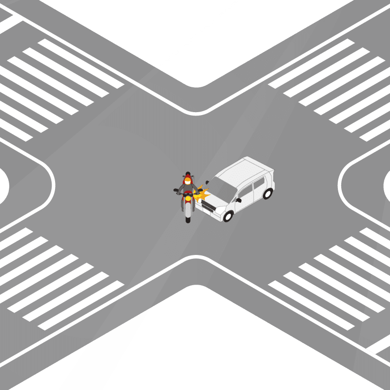 ・イラストに使用している各要素(車、背景、車、天候、信号、衝突地点など)は、代表的なイメージをイラスト化しており、色や形状等含め現実の事故の状況とは異なります。あくまで、事故のイメージとして参考までにご活用ください。