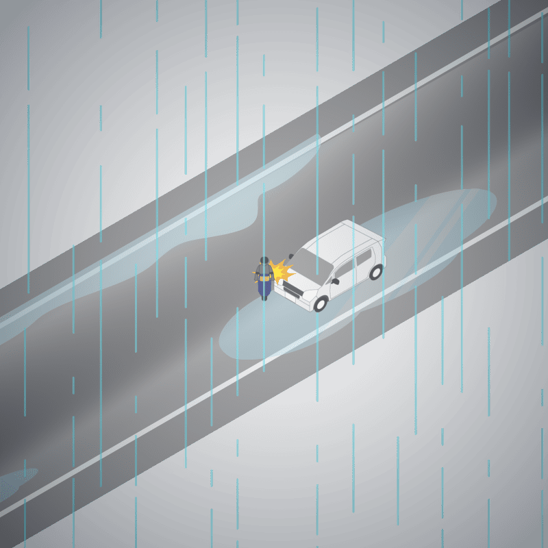 ・イラストに使用している各要素(車、背景、車、天候、信号、衝突地点など)は、代表的なイメージをイラスト化しており、色や形状等含め現実の事故の状況とは異なります。あくまで、事故のイメージとして参考までにご活用ください。