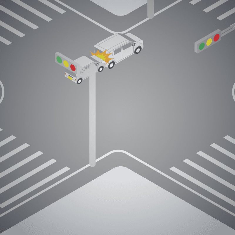 ・イラストに使用している各要素(車、背景、車、天候、信号、衝突地点など)は、代表的なイメージをイラスト化しており、色や形状等含め現実の事故の状況とは異なります。あくまで、事故のイメージとして参考までにご活用ください。