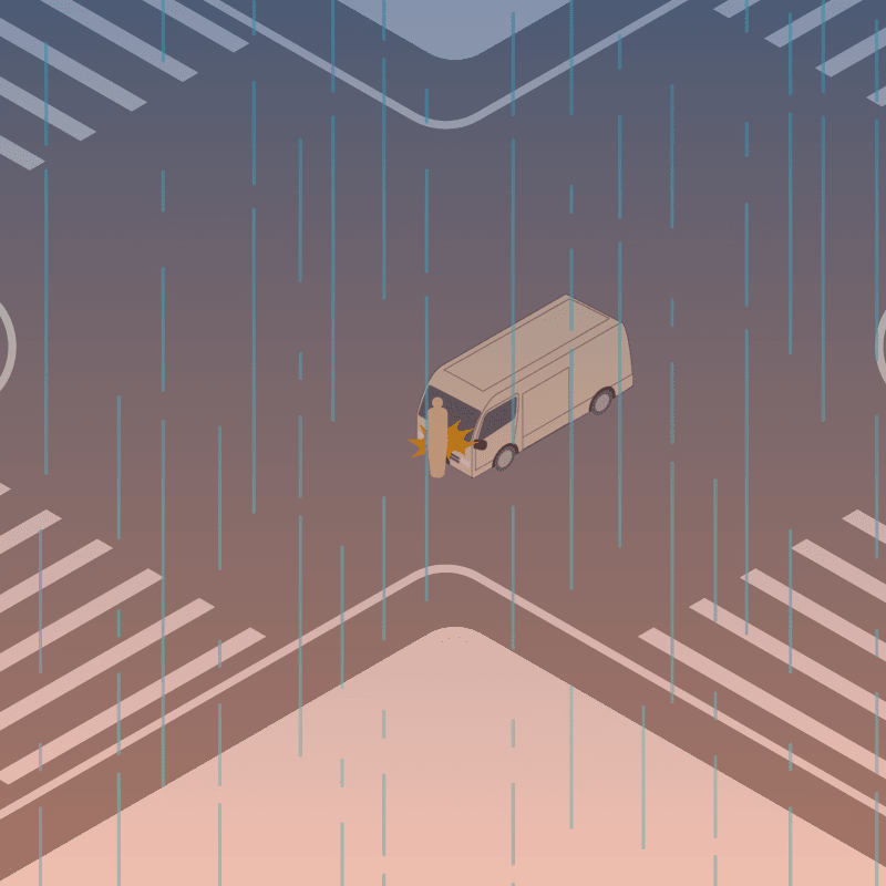 ・イラストに使用している各要素(車、背景、車、天候、信号、衝突地点など)は、代表的なイメージをイラスト化しており、色や形状等含め現実の事故の状況とは異なります。あくまで、事故のイメージとして参考までにご活用ください。