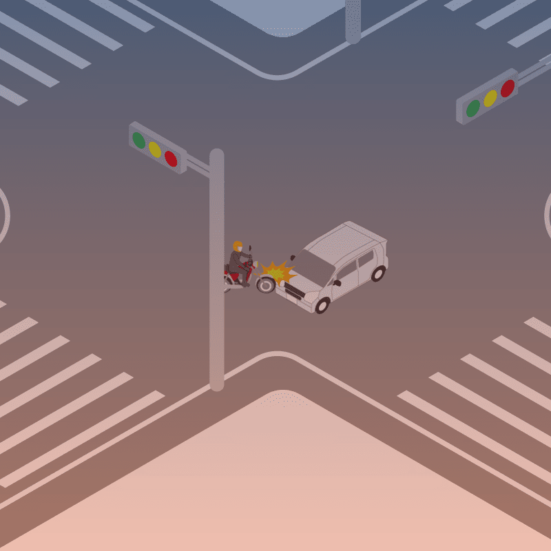 ・イラストに使用している各要素(車、背景、車、天候、信号、衝突地点など)は、代表的なイメージをイラスト化しており、色や形状等含め現実の事故の状況とは異なります。あくまで、事故のイメージとして参考までにご活用ください。