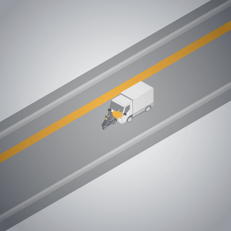 ・イラストに使用している各要素(車、背景、車、天候、信号、衝突地点など)は、代表的なイメージをイラスト化しており、色や形状等含め現実の事故の状況とは異なります。あくまで、事故のイメージとして参考までにご活用ください。