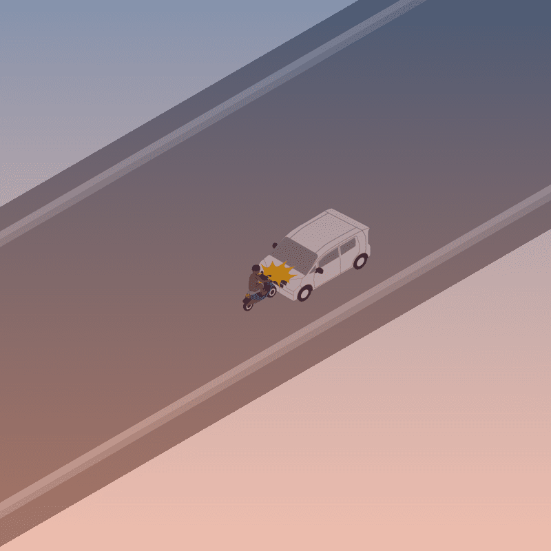 ・イラストに使用している各要素(車、背景、車、天候、信号、衝突地点など)は、代表的なイメージをイラスト化しており、色や形状等含め現実の事故の状況とは異なります。あくまで、事故のイメージとして参考までにご活用ください。