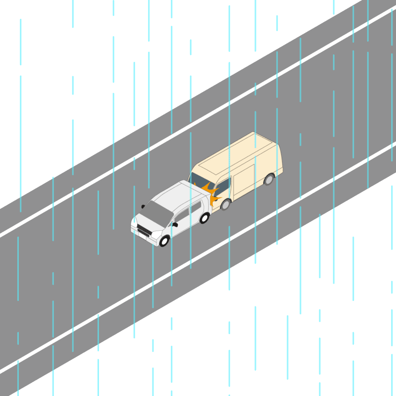 ・イラストに使用している各要素(車、背景、車、天候、信号、衝突地点など)は、代表的なイメージをイラスト化しており、色や形状等含め現実の事故の状況とは異なります。あくまで、事故のイメージとして参考までにご活用ください。