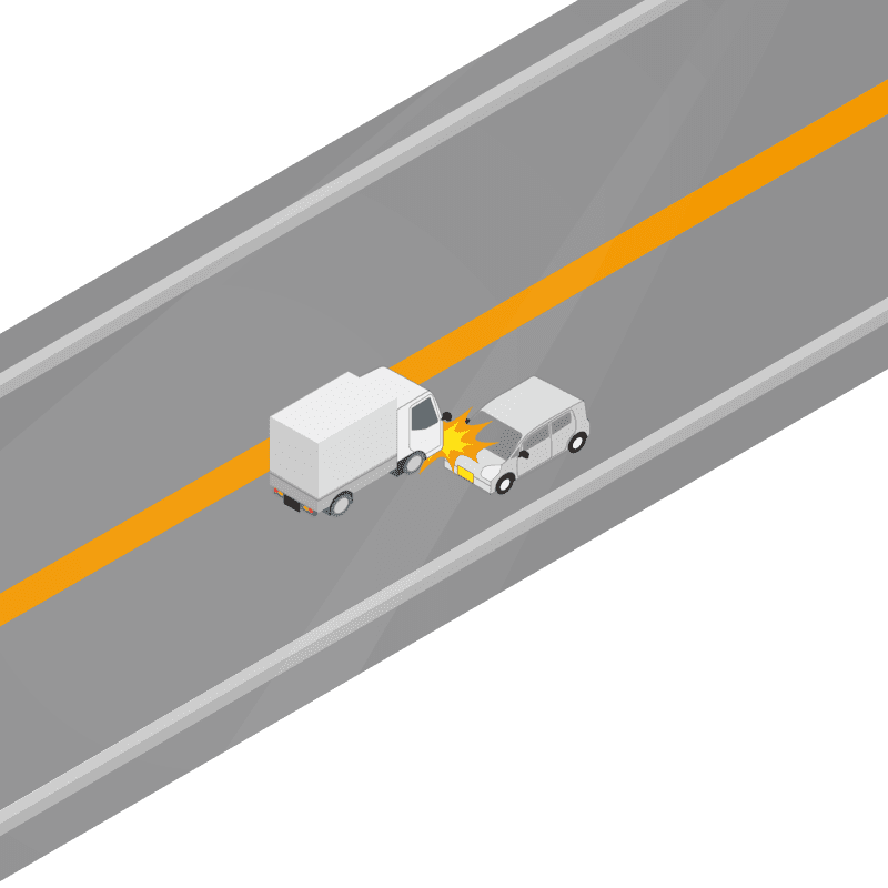 ・イラストに使用している各要素(車、背景、車、天候、信号、衝突地点など)は、代表的なイメージをイラスト化しており、色や形状等含め現実の事故の状況とは異なります。あくまで、事故のイメージとして参考までにご活用ください。