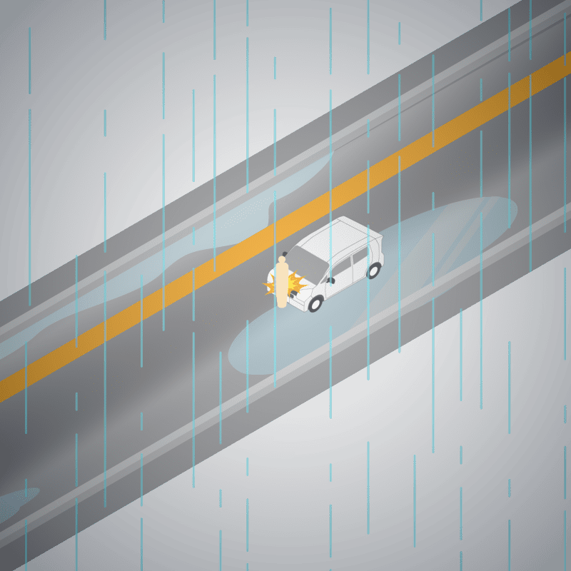 ・イラストに使用している各要素(車、背景、車、天候、信号、衝突地点など)は、代表的なイメージをイラスト化しており、色や形状等含め現実の事故の状況とは異なります。あくまで、事故のイメージとして参考までにご活用ください。