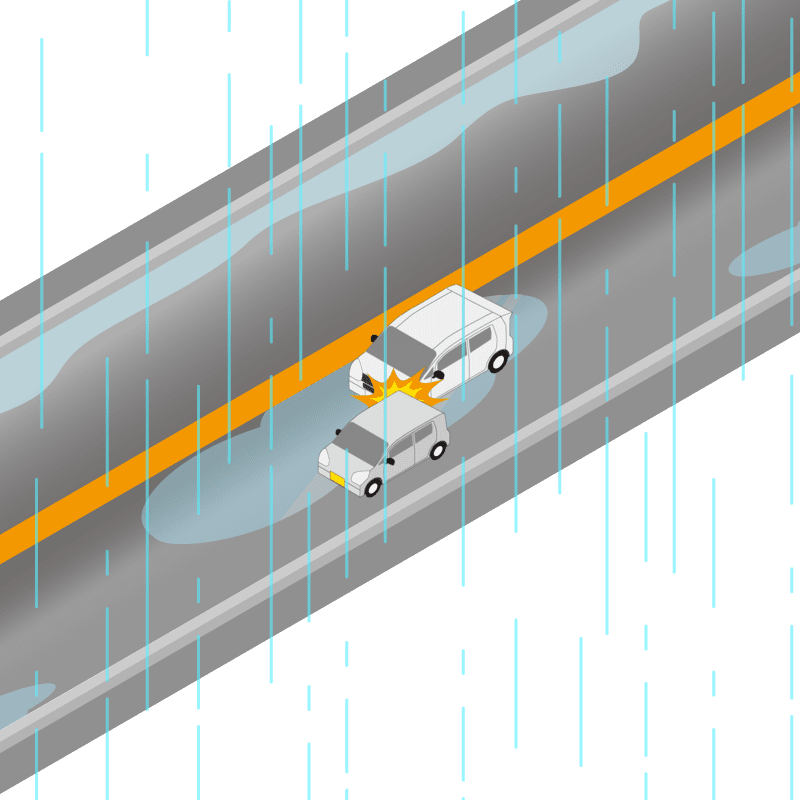 ・イラストに使用している各要素(車、背景、車、天候、信号、衝突地点など)は、代表的なイメージをイラスト化しており、色や形状等含め現実の事故の状況とは異なります。あくまで、事故のイメージとして参考までにご活用ください。