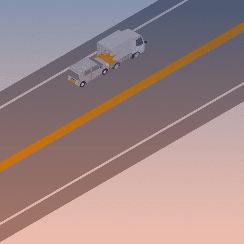 ・イラストに使用している各要素(車、背景、車、天候、信号、衝突地点など)は、代表的なイメージをイラスト化しており、色や形状等含め現実の事故の状況とは異なります。あくまで、事故のイメージとして参考までにご活用ください。