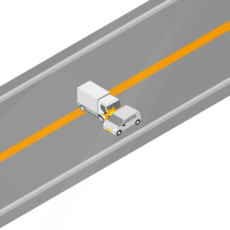 ・イラストに使用している各要素(車、背景、車、天候、信号、衝突地点など)は、代表的なイメージをイラスト化しており、色や形状等含め現実の事故の状況とは異なります。あくまで、事故のイメージとして参考までにご活用ください。