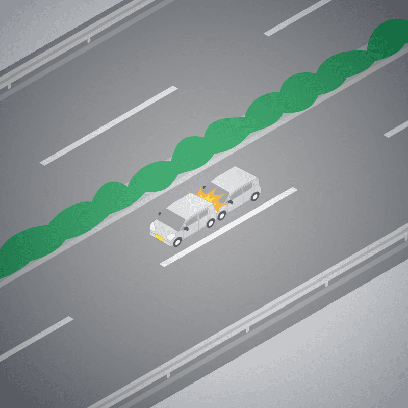 ・イラストに使用している各要素(車、背景、車、天候、信号、衝突地点など)は、代表的なイメージをイラスト化しており、色や形状等含め現実の事故の状況とは異なります。あくまで、事故のイメージとして参考までにご活用ください。