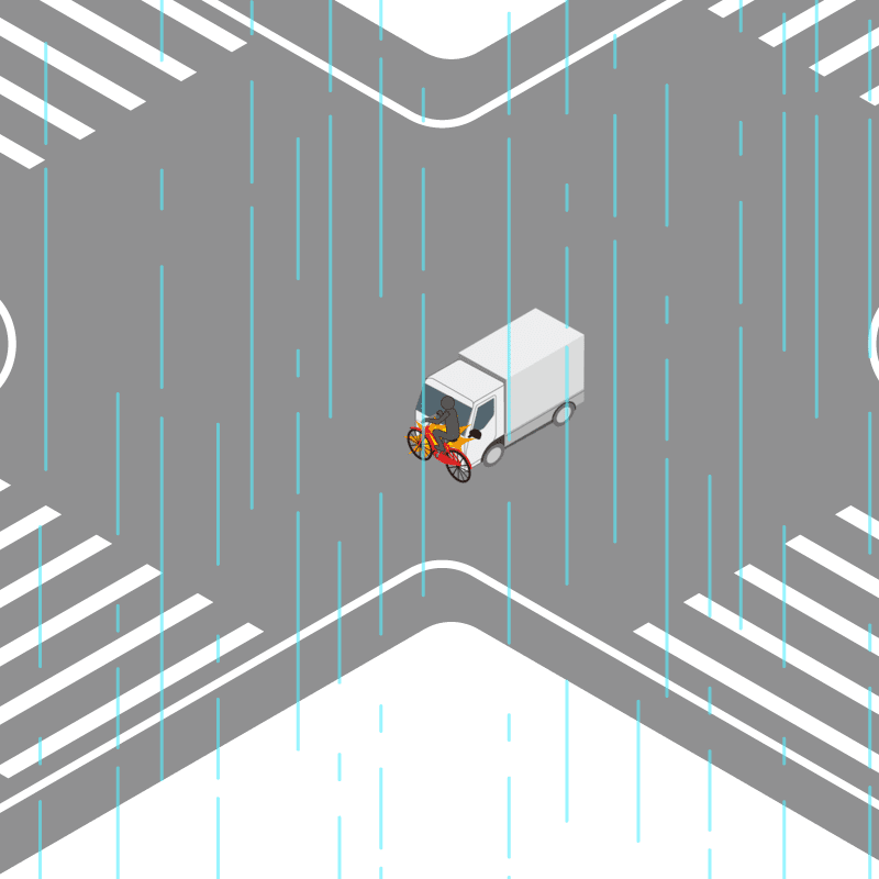 ・イラストに使用している各要素(車、背景、車、天候、信号、衝突地点など)は、代表的なイメージをイラスト化しており、色や形状等含め現実の事故の状況とは異なります。あくまで、事故のイメージとして参考までにご活用ください。