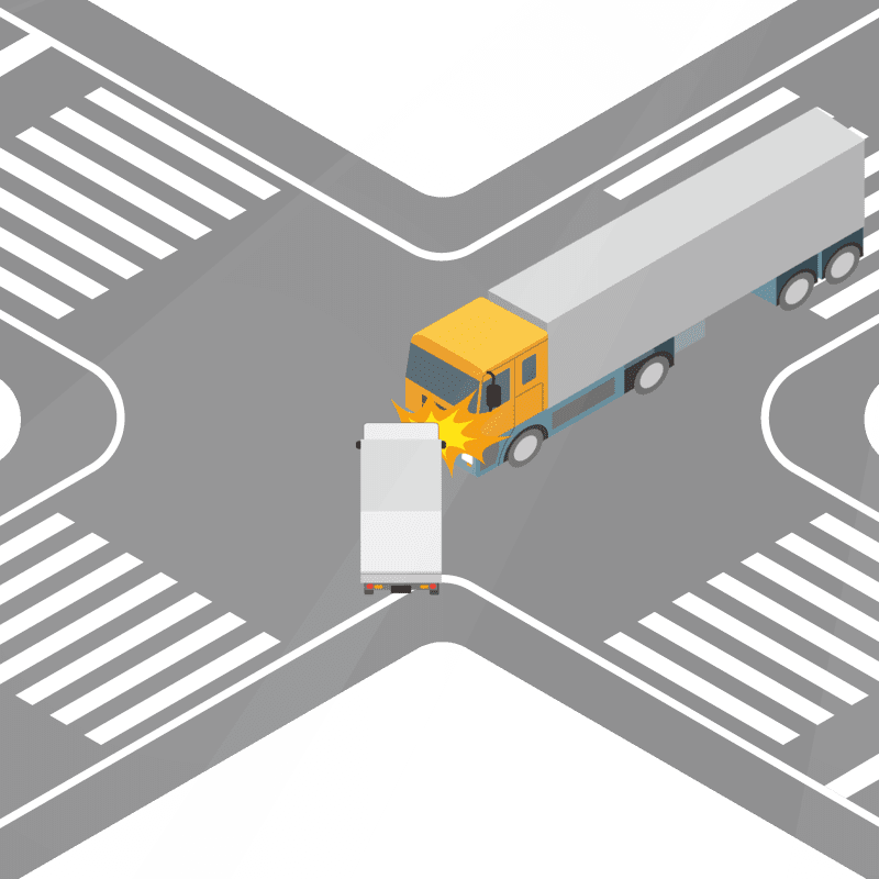 ・イラストに使用している各要素(車、背景、車、天候、信号、衝突地点など)は、代表的なイメージをイラスト化しており、色や形状等含め現実の事故の状況とは異なります。あくまで、事故のイメージとして参考までにご活用ください。