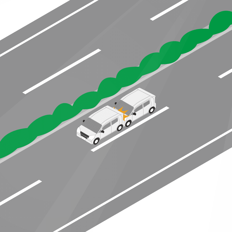 ・イラストに使用している各要素(車、背景、車、天候、信号、衝突地点など)は、代表的なイメージをイラスト化しており、色や形状等含め現実の事故の状況とは異なります。あくまで、事故のイメージとして参考までにご活用ください。