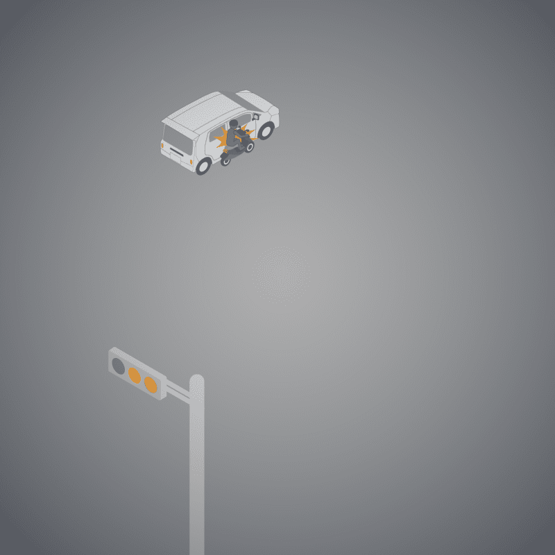 ・イラストに使用している各要素(車、背景、車、天候、信号、衝突地点など)は、代表的なイメージをイラスト化しており、色や形状等含め現実の事故の状況とは異なります。あくまで、事故のイメージとして参考までにご活用ください。