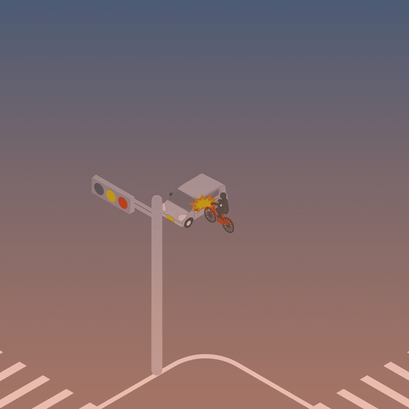 ・イラストに使用している各要素(車、背景、車、天候、信号、衝突地点など)は、代表的なイメージをイラスト化しており、色や形状等含め現実の事故の状況とは異なります。あくまで、事故のイメージとして参考までにご活用ください。