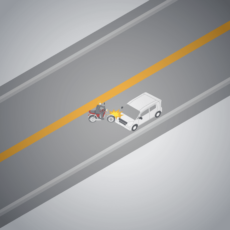 ・イラストに使用している各要素(車、背景、車、天候、信号、衝突地点など)は、代表的なイメージをイラスト化しており、色や形状等含め現実の事故の状況とは異なります。あくまで、事故のイメージとして参考までにご活用ください。