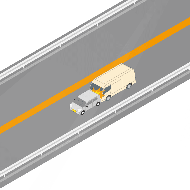 ・イラストに使用している各要素(車、背景、車、天候、信号、衝突地点など)は、代表的なイメージをイラスト化しており、色や形状等含め現実の事故の状況とは異なります。あくまで、事故のイメージとして参考までにご活用ください。