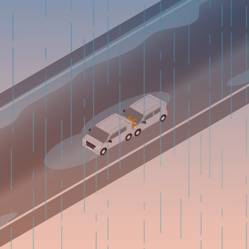 ・イラストに使用している各要素(車、背景、車、天候、信号、衝突地点など)は、代表的なイメージをイラスト化しており、色や形状等含め現実の事故の状況とは異なります。あくまで、事故のイメージとして参考までにご活用ください。