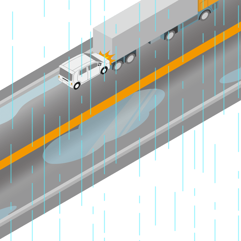 ・イラストに使用している各要素(車、背景、車、天候、信号、衝突地点など)は、代表的なイメージをイラスト化しており、色や形状等含め現実の事故の状況とは異なります。あくまで、事故のイメージとして参考までにご活用ください。