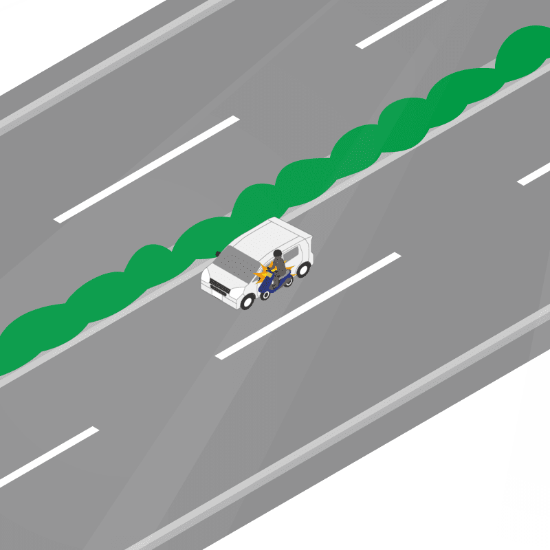 ・イラストに使用している各要素(車、背景、車、天候、信号、衝突地点など)は、代表的なイメージをイラスト化しており、色や形状等含め現実の事故の状況とは異なります。あくまで、事故のイメージとして参考までにご活用ください。