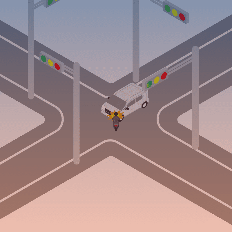 ・イラストに使用している各要素(車、背景、車、天候、信号、衝突地点など)は、代表的なイメージをイラスト化しており、色や形状等含め現実の事故の状況とは異なります。あくまで、事故のイメージとして参考までにご活用ください。