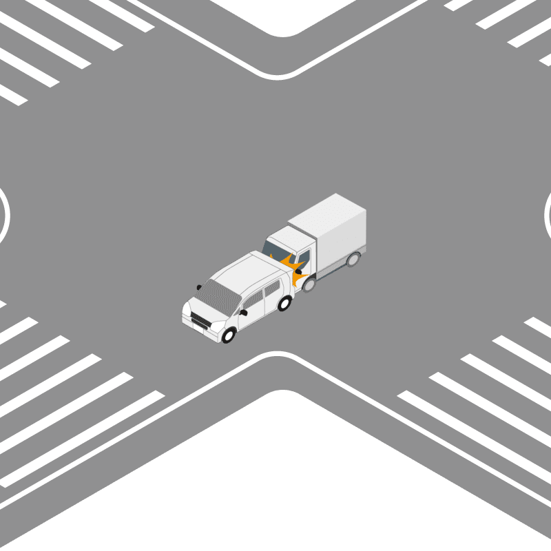 ・イラストに使用している各要素(車、背景、車、天候、信号、衝突地点など)は、代表的なイメージをイラスト化しており、色や形状等含め現実の事故の状況とは異なります。あくまで、事故のイメージとして参考までにご活用ください。