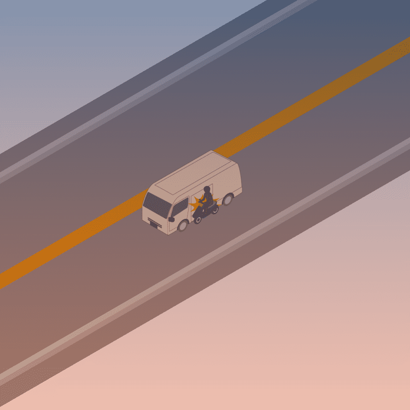 ・イラストに使用している各要素(車、背景、車、天候、信号、衝突地点など)は、代表的なイメージをイラスト化しており、色や形状等含め現実の事故の状況とは異なります。あくまで、事故のイメージとして参考までにご活用ください。