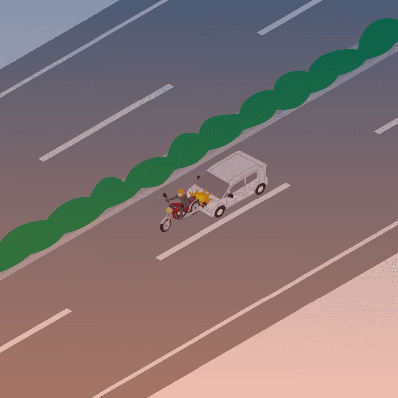 ・イラストに使用している各要素(車、背景、車、天候、信号、衝突地点など)は、代表的なイメージをイラスト化しており、色や形状等含め現実の事故の状況とは異なります。あくまで、事故のイメージとして参考までにご活用ください。