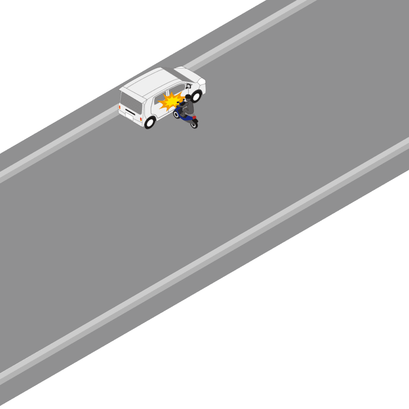 ・イラストに使用している各要素(車、背景、車、天候、信号、衝突地点など)は、代表的なイメージをイラスト化しており、色や形状等含め現実の事故の状況とは異なります。あくまで、事故のイメージとして参考までにご活用ください。