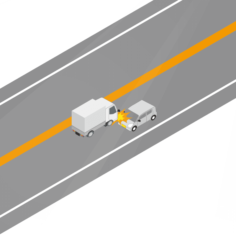 ・イラストに使用している各要素(車、背景、車、天候、信号、衝突地点など)は、代表的なイメージをイラスト化しており、色や形状等含め現実の事故の状況とは異なります。あくまで、事故のイメージとして参考までにご活用ください。